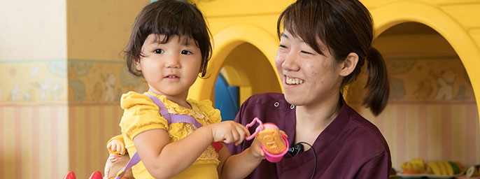 託児ルームには専任の保育士がおり、診療室のテレビでお子様の様子を確認することができます。お子様は生後6ヶ月からお預かりいたしますので、安心して治療をお受けください。託児ルームをご利用の際は、医院予約時に託児ルームの予約もお取りください。